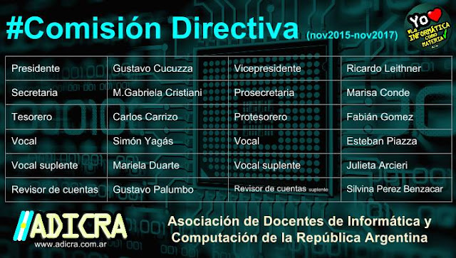 Pero con eso no alcanzaba. Se hacía necesario tener una entidad que nos representara. Más adelante voy a publicar la historia de ADICRA. También los hechos que condujeron a nuestro primer gran logro: terminar con La Informática Prohibida, ya que finalmente, todos los alumnos de todos los bachilleratos de la CABA tendrán informática como materia en Tecnologías de la Información en 3ro., 4to. y 5to. año, no sólo los que estudien el Bachiller en Informática.