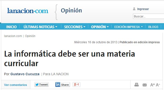 El título de la nota que me publicaron en el diario La Nación no andaba con vueltas, era bien directo: La informática debe ser una materia curricular.